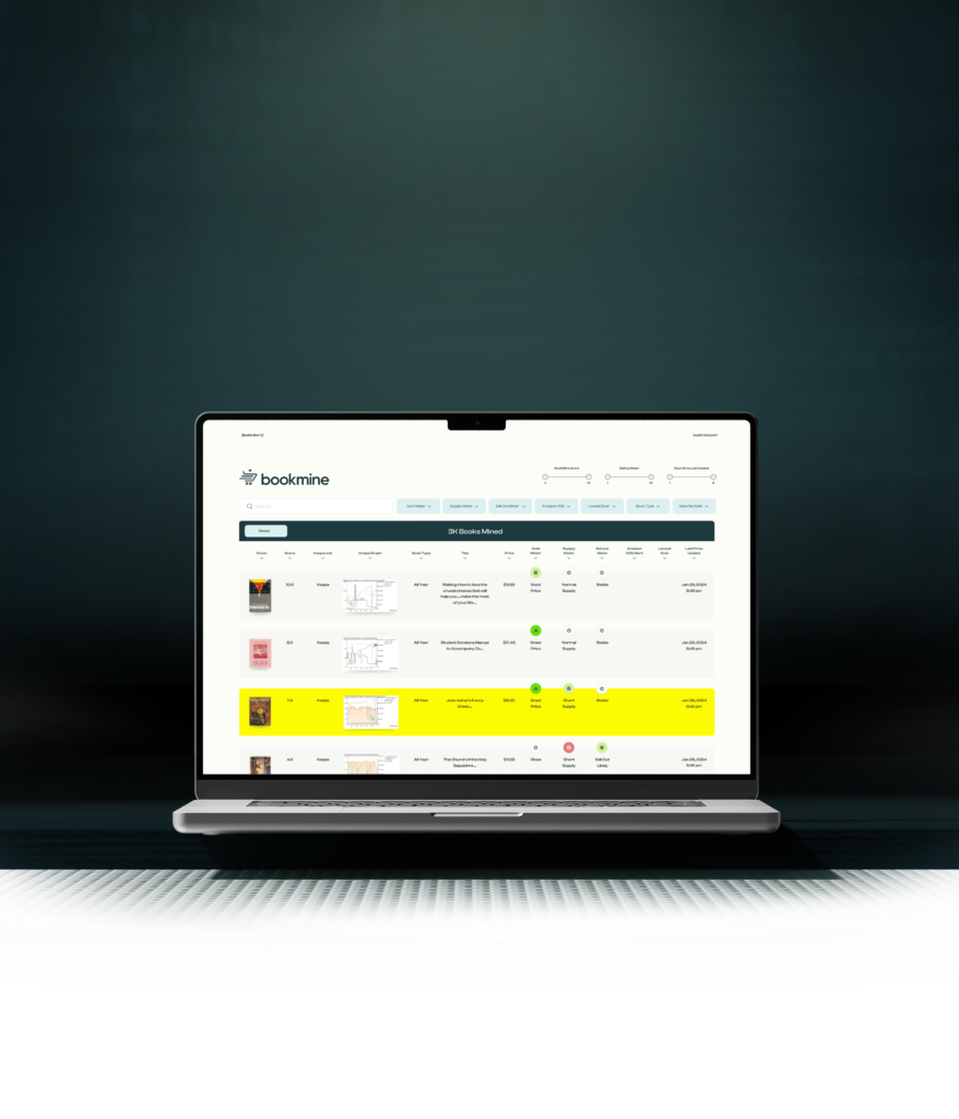 Use Bookmine mini to help us source profitable books on Amazon. Bookmine mini finds up to 600 profitable books to purchase per day.